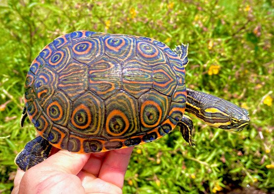 Please note: The Belize Sliders pictured are several months old. Hatchlings take a few months with proper diet and UVB light to develop their brighter colors