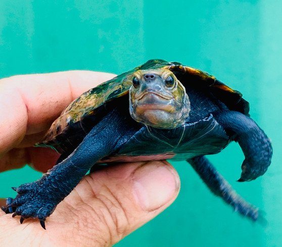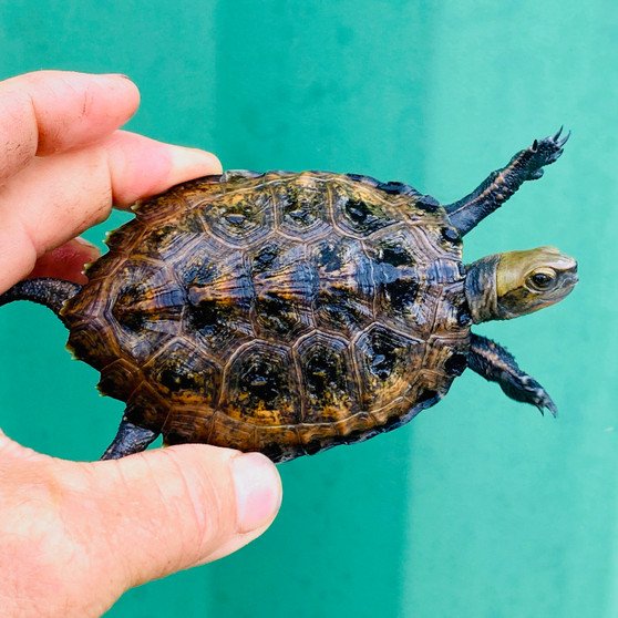 Think of a North American Wood Turtle, with a pretty golden shell, and a charcoal black belly – just as outgoing and intelligent… These Woods are perfect for states that don’t allow North American Woods – they even take the cold well as adults…